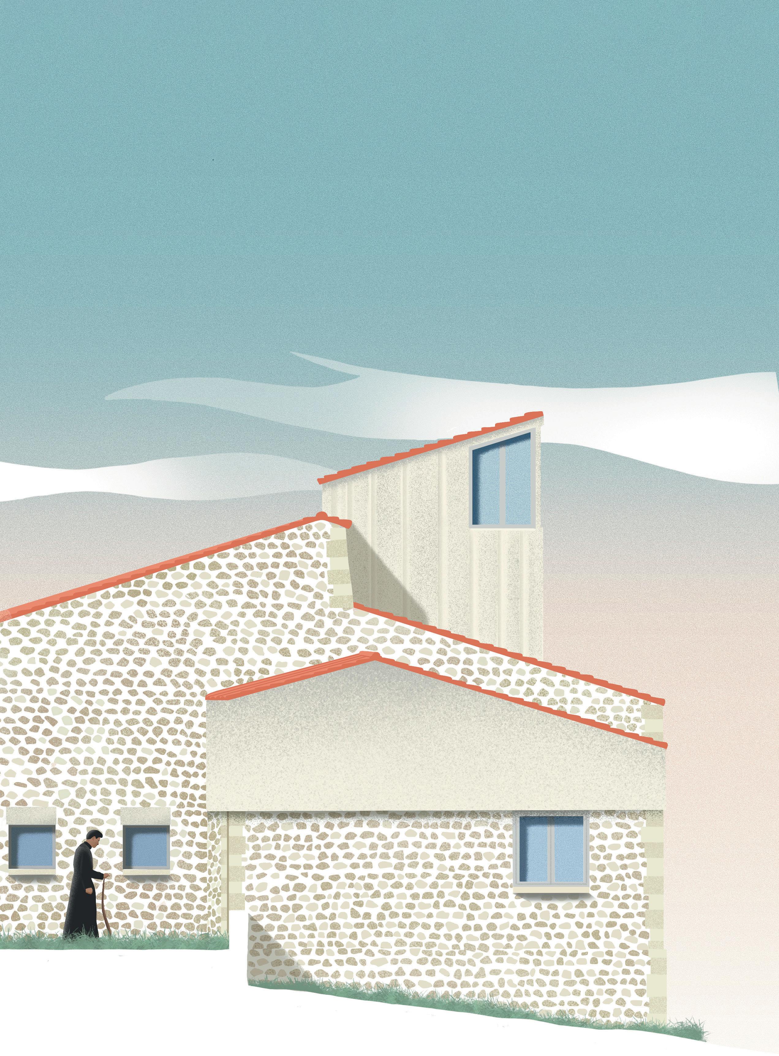 presidido por él mismo y compuesto por, Rafael Moneo, Luis Peña Ganchegui, y actuando como secretario quien esto escribe. Como anécdota recuerdo que Moneo, tras conocer el caserón objeto del concurso, describió la corta escalera convexa que sube de la sala de exposiciones hasta el zaguán del edificio, como “laurenciana”, refiriéndose seguramente a la de la biblioteca de Lorenzo de Médici en Florencia; lo que no dejaba de ser una generosa (y exagerada) aportación al valor arquitectónico de lo que iba a ser nuestro nueva casa profesional. Ya en el nuevo edificio y para la fiesta de la patrona de los arquitectos, Nuestra Señora de Belén en su huida a Egipto, —que coincidía con la cena colegial en algún restaurante de postín de Logroño—, me encargaba de montar un altar improvisado en uno de los calados, reconvertido en capilla ocasional, para celebrar una misa, que inevitablemente la celebraba Gerardo —aunque ya no fuera nuestro decano— por su doble condición de arquitecto y sacerdote. Su homilía, indefectiblemente, era crítica con la concentrada promoción inmobiliaria y los pingües honorarios repartidos entre unos pocos, y la necesidad de extender ese “bienestar” profesional a otros. Los corrillos con las quejas a sus palabras eran la rutina de cada año, porque las mismas hacían vibrar las conciencias de los mejor situados, casi todos presentes en ese acto, aunque como en un torpe remedo del Gato Pardo, casi nada cambiaba y casi todo seguía igual.