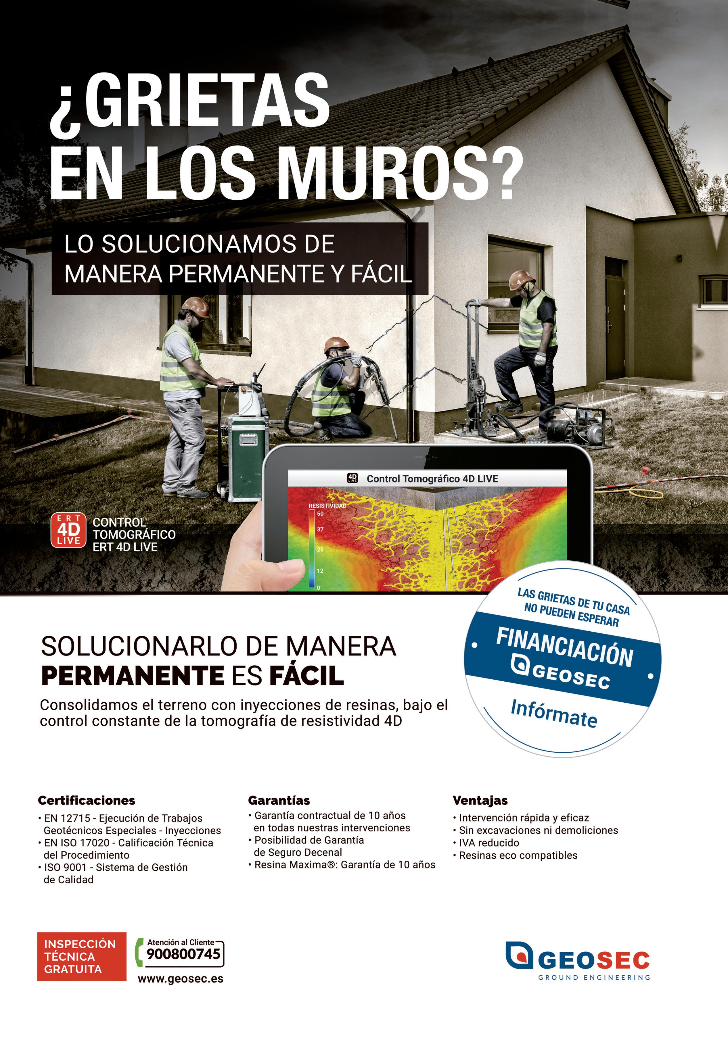 Para la estabilización de las placas, GEOSEC® realiza una intervención mediante su método SOIL STABILIZATION™ con inyecciones de resinas expansivas y así resolver los problemas de movilidad entre placas (tableteo) rellenando los espacios existentes entre el elemento constructivo (solera) y la base, compactando y eliminando las irregularidades de la propia base granular de soporte.