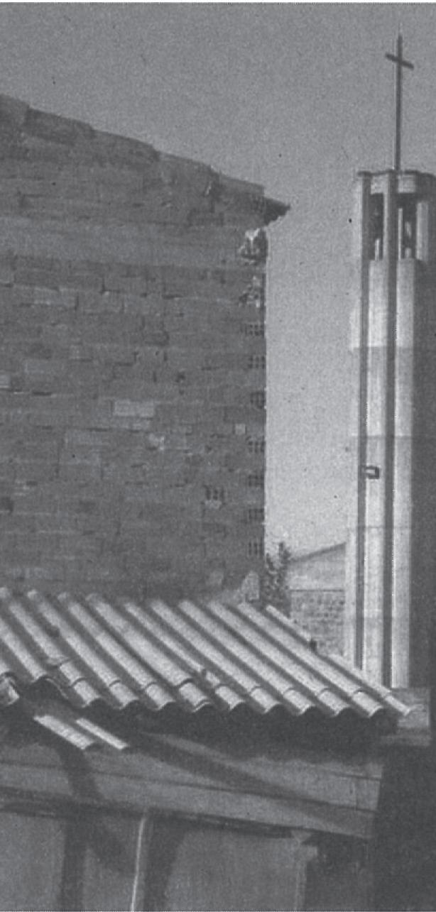 El autor de la obra, el arquitecto, es un amigo admirado, si bien aquella primera vez aún no le conocía. Es cura, quizá por esto dispuso la cabecera como mirando a oriente, hacia Tierra Santa, o quizá sólo buscó la complicidad de la luz para la gradación de espacios que nos espera dentro. Sin tanta duda se puede asegurar que conoce bien la arquitectura religiosa italiana, no en vano el campanario, como algunos campaniles, está escindido del núcleo principal del templo y tiene