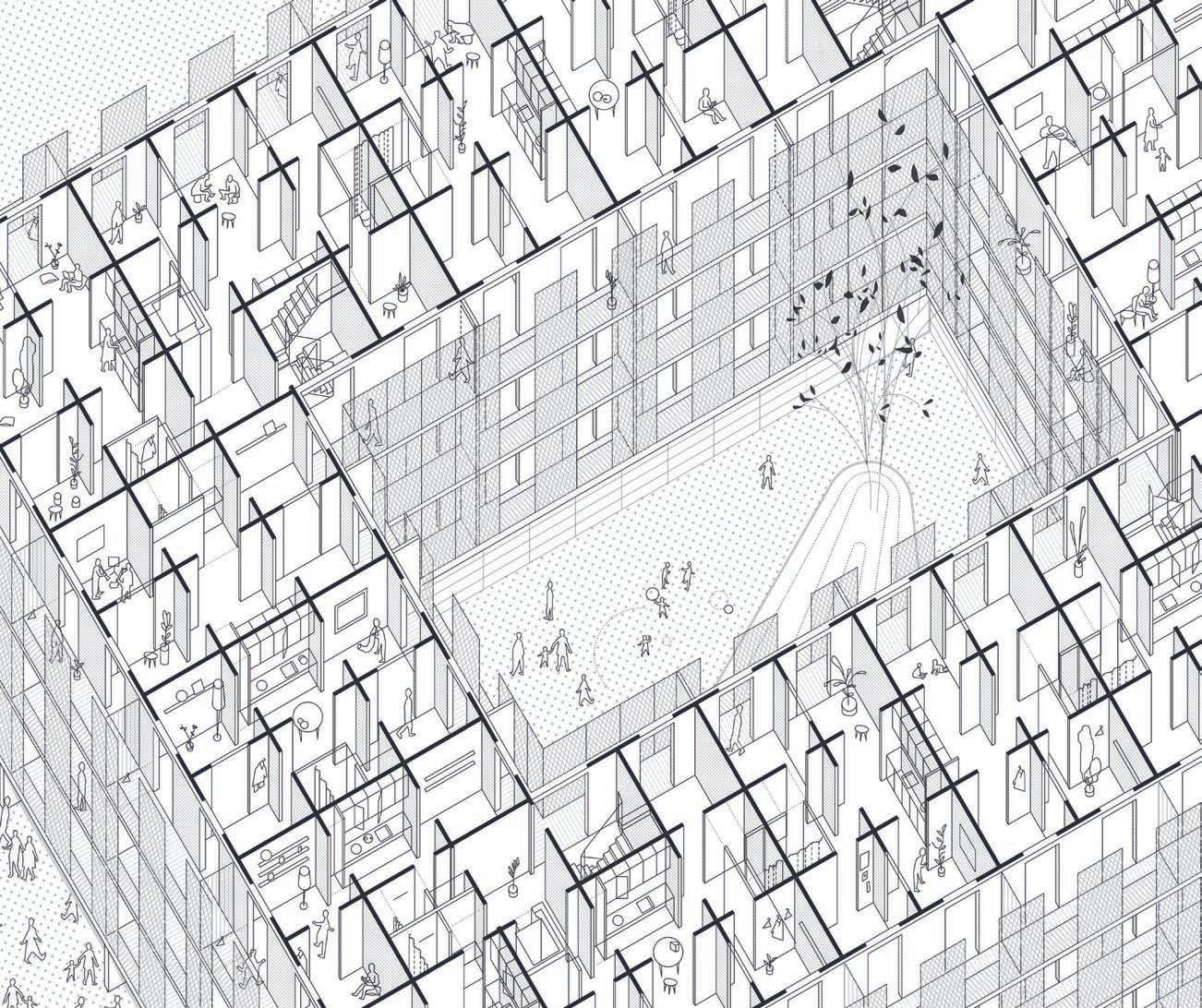 La matriz de habitaciones comunicantes se convierte en un lienzo donde la flexibilidad es la esencia del imaginario colectivo. Los espacios indiferenciados permiten una reprogramación constante, reflejando la fluidez de la vida cotidiana. ARQUITECTURAS