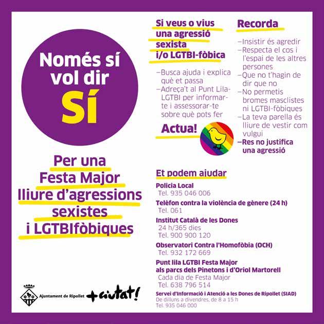 Ja tornem a tenir aquí la nostra Festa Major! Enguany, tornem a vestir els nostres carrers i places de l’alegria, la il·lusió i la rauxa que ens caracteritza. Reafirmant el nostre orgull ripolletenc, amb la nostra diversitat, passió i personalitat pròpia.