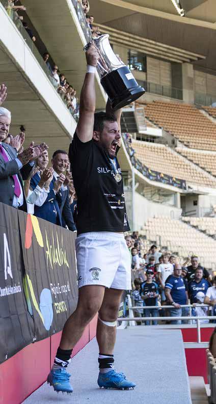 Pero si de algo no sabe SilverStorm El Salvador, como ha demostrado tantas veces a lo largo de estos más de 60 años, es de rendición. Una inteligente jugada de Munilla culminaba un largo ataque en la 22 sevillana con ensayo bajo los palos, mientras que, a un cuarto de hora para el final, era Reuben Du Plooy quien posaba el oval para establecer el que sería definitivo 27-26 en el electrónico de La Cartuja y llevar así la 8ª Copa de SM el Rey a las vitrinas de nuestro Club.