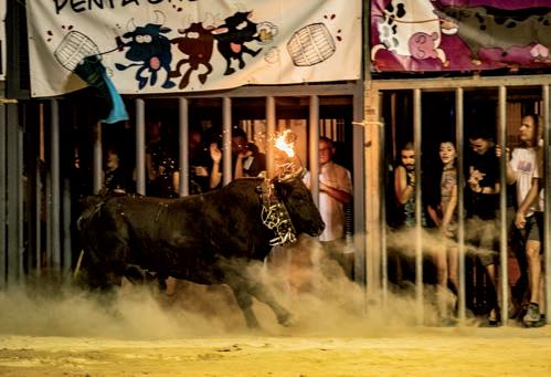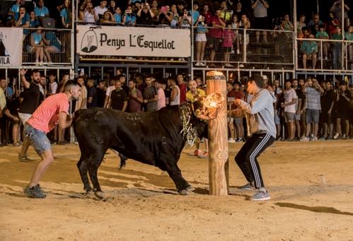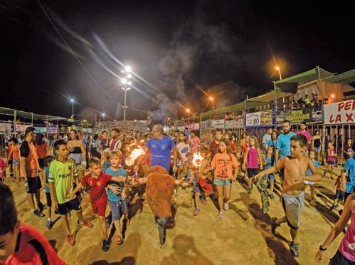 00.05 a 00.15 h. Encierro de cinco toros embolados, en el recorrido habitual. De la ganadería JUAN FAET (CS). Desde Avenida Sants de la pedra hasta el recinto ferial. Emboladas a cargo de la cuadrilla Murbiter.