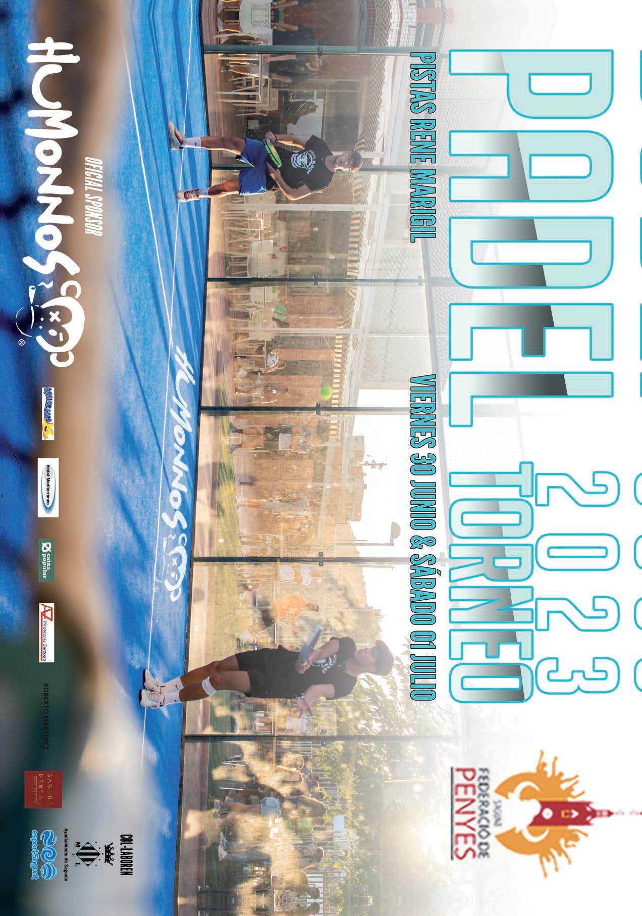 19.00 h. Torneig de pàdel Penyes de Sagunt 2023. La final se celebrarà dissabte 1 de juliol. Els quadrants aniran en funció de les inscripcions, així com els horaris a establir.