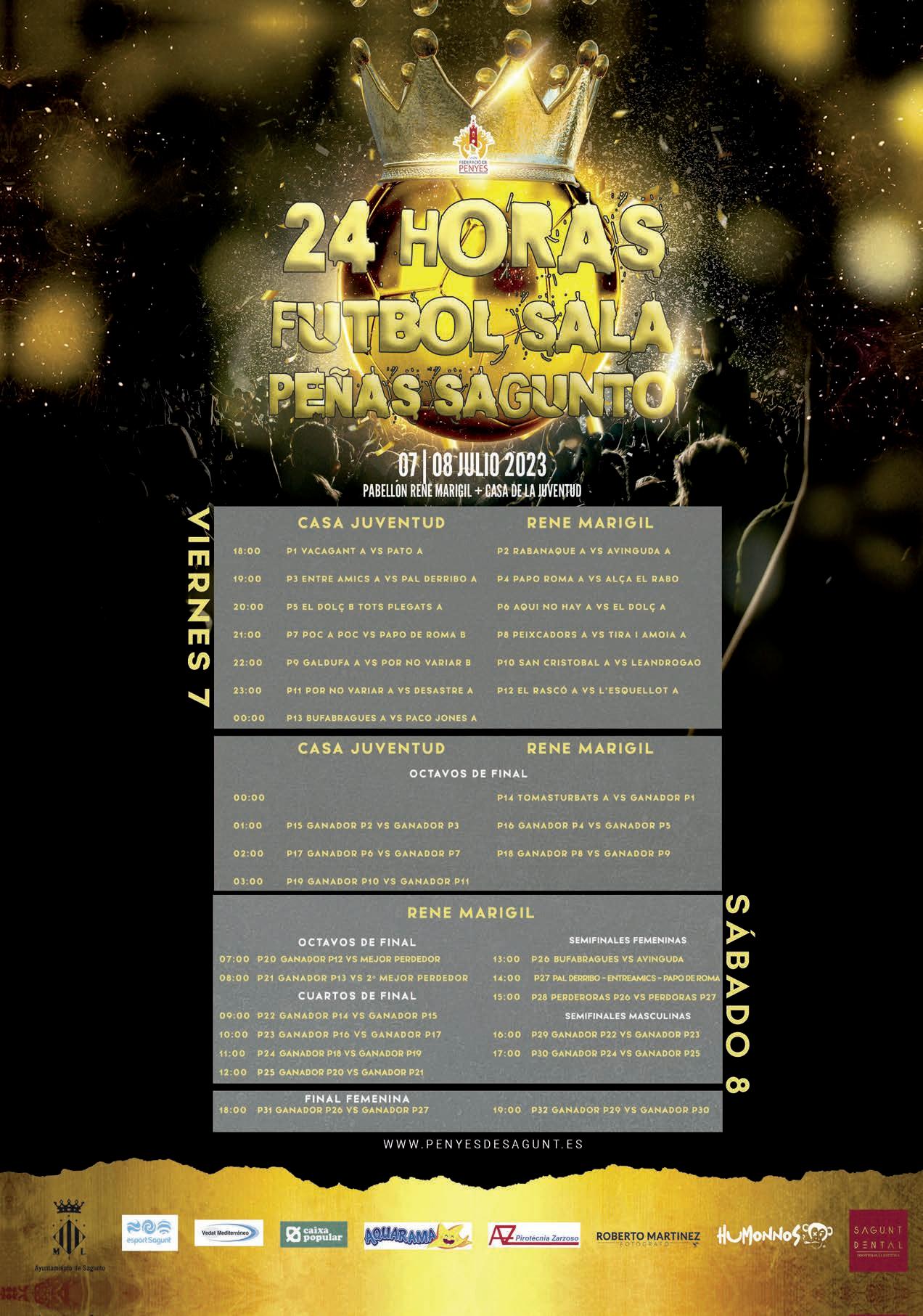 18.00 a 03.00 h. Campeonato Peñas de Fútbol Sala Torneo 24 horas. Pabellones René Marigil y Casa de la Juventud.