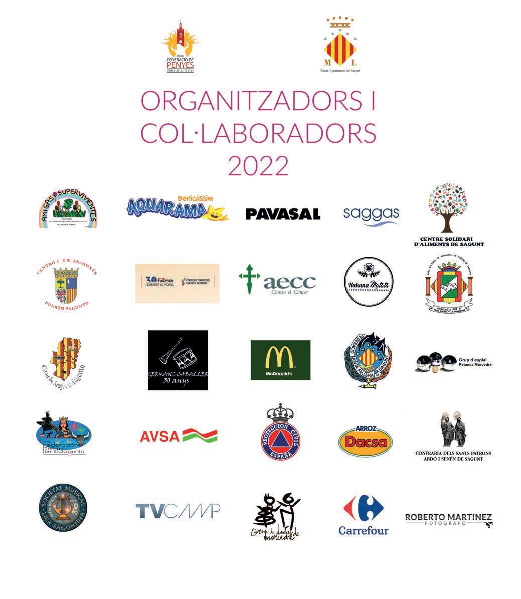 Empreses col·laboradores: EDITORIAL MIC, SAGUNT DENTAL, DACSA, VEDAT MEDITERRANEO, HUMONNOS, PIROTÈCNIA ZARZOSO, CAIXA POPULAR, AQUARAMA BENICÀSSIM, SPEAK ENGLISH SAGUNTO, PAVASAL, MESÓN CARLOS, FIRA D’ATRACCIONS, ROBERTO MARTÍNEZ FOTÓGRAFO, DICOMÓVILES VILLASONORA.