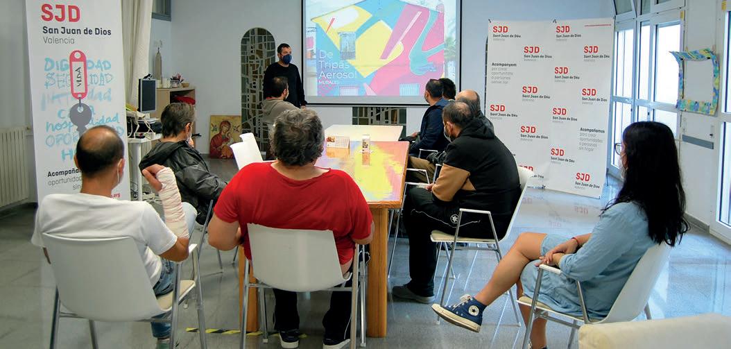 atendidas. En este sentido también, se ha trabajado a través del arte, utilizándolo como herramienta para la inclusión social. El arte en todas sus formas ha demostrado tener gran utilidad terapéutica, para la gestión de las emociones y en el desarrollo de habilidades interpersonales. Durante estos años hemos tenido proyectos de pintura mural en nuestros centros con artistas como De tripas aerosol y Such, que han transformado completamente los espacios de forma participativa con las personas atendidas.