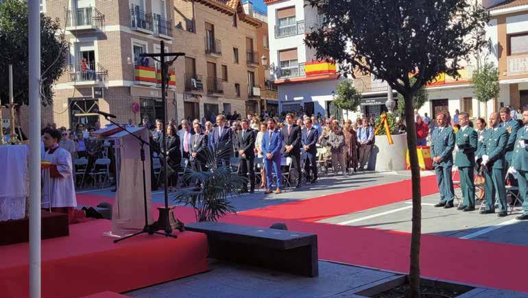 La Plaza de la Constitución acogió los actos conmemorativos de este día. Actos que comenzaron con la celebración euca rística en honor a la Virgen del Pilar, Patro na de la Hispanidad y de la Guardia Civil, por primera vez en la plaza del municipio. Seguidamente se realizó el acto castrense