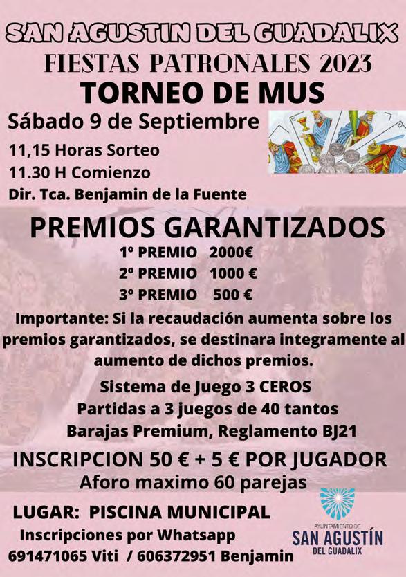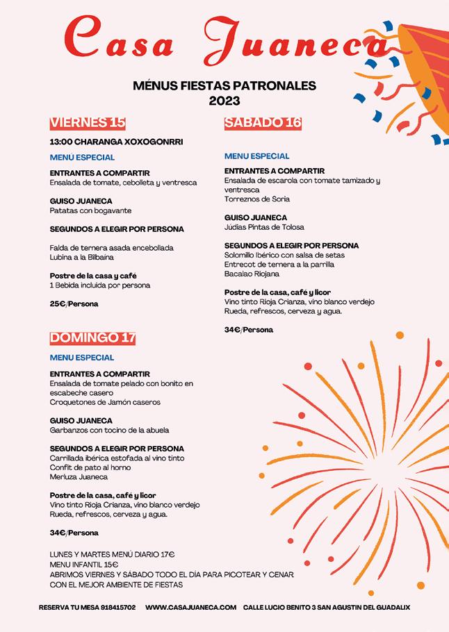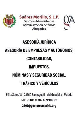 Los actos que aquí os anunciamos no serían posibles sin vosotros: la Hermandad, los Clubes Deportivos, las Asociaciones, la Comisión Taurina y la de Festejos, los trabajadores y funcionarios que antes, durante y después ofrecerán su esfuerzo en estas Fiestas, y, por supuesto, los vecinos porque si algo caracteriza a San Agustín del Guadalix es que sabemos disfrutar desde el respeto