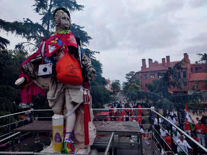 La estatua de Fernando VI, conocida popularmente como ‘El Santo’, se convertirá protagonista en el tradicional pregón de peñas, que engalanarán a este mítico emblema de la ciudad con sus colores y banderas.