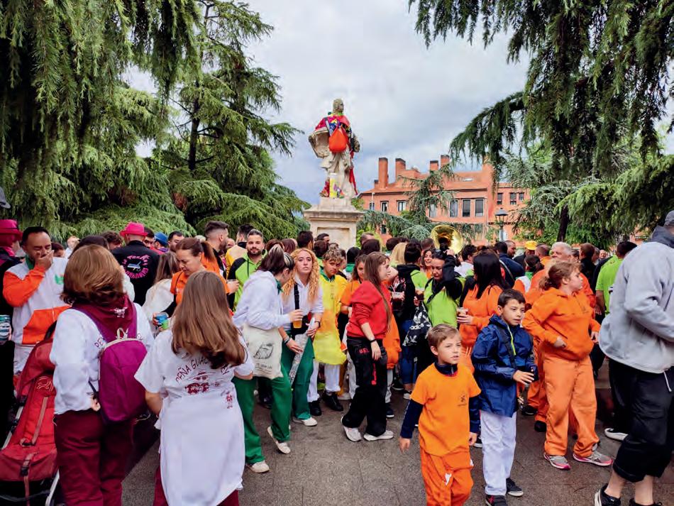 Las peñas del municipio animan el ambiente previo a su pregón. Concentración para realizar juntos/as el recorrido.