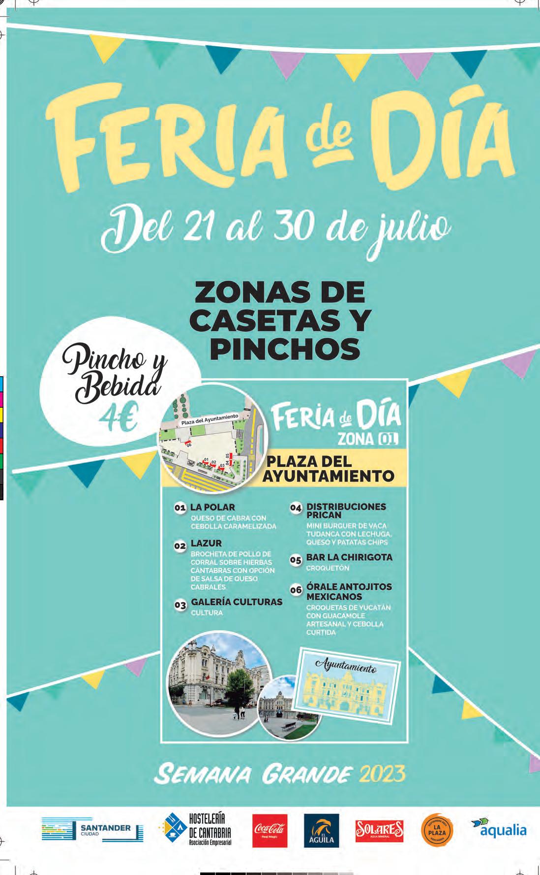 17:00 h. Reparto de la revista informativa y el programa de mano de la Semana Grande, así como de los pañuelos festivos en la caseta instalada en la Plaza del Ayuntamiento.