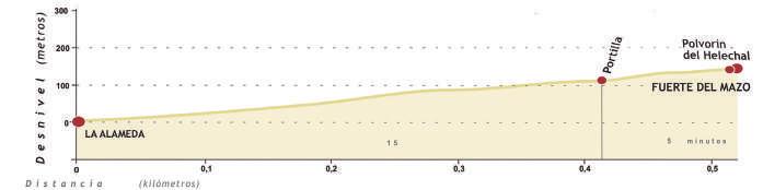 Inicio: Fuerte del Mazo. Tipo de marcha: Lineal. Distancia total: 2,1 km (sólo ida). Dificultad: Baja. Desnivel: Unos 100 metros acumulados.