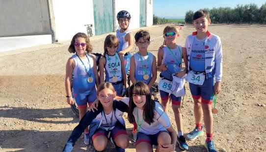 Durante este mes de octubre se están disputando varias pruebas de duatlón del calendario aragonés de triatlón, en el que el club Transpor tes Sola Triatlón Tarazona compite con dos equipos: absoluto e infantil. En el último duatlón celebrado en Barboles, ‘Duatlón Cross Aceite Virgen Extra Corona’, el equipo infantil estuvo a un gran nivel con hasta siete podios en todas las categorías. En infantil femenino, doblete con victoria de Alba Mu ñoz y medalla de plata para su compañera Irati Izquierdo. También partici pó en esta categoría en modalidad masculina Juan Navarro, quien terminó en la quinta plaza.