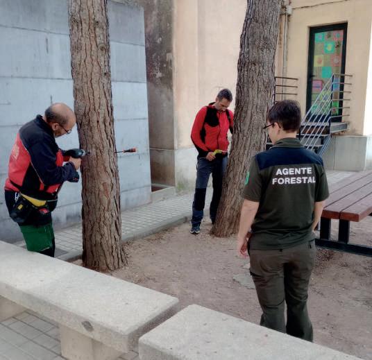 Como indica González, es “importante” luchar contra la procesio naria. “No matan el árbol, pero es una plaga muy insistente que sí que merma el crecimiento de los pinos. Además, tiene un gran poder alérgico que causa problemas en el inicio de la primavera a animales como los perros y también a las personas. La procesionaria, cuando se siente amenazada, libera los pelos urticantes que el viento trans porta. No son visibles a simple vista y causan mucha alergia”, señala.