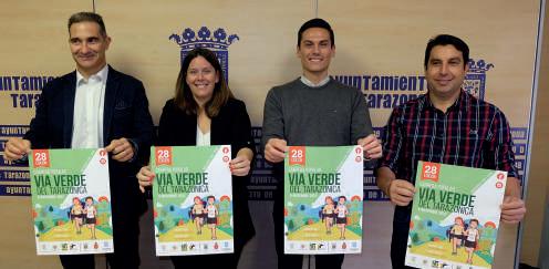 La XXVIII Carrera Popular Vía Verde Tarazoni ca, se celebrará el domingo 6 de noviembre, con salida desde Tarazona para la medio ma ratón, y desde Tulebras para la prueba de los 10 ki lómetros de distancia, ambas con meta en Tudela. El responsable de Deportes del Ayuntamiento de Tarazona y de la Comarca de Tarazona y El Mon cayo, Pablo Escribano; la concejala de Deportes del Ayuntamiento de Tudela, Irune García; el alcal de de Tulebras, Andrés Planillo, y el presidente del Club de Atletismo de Tarazona, José Manuel Cala via, se encargaron de presentar los detalles de esta prueba.