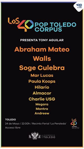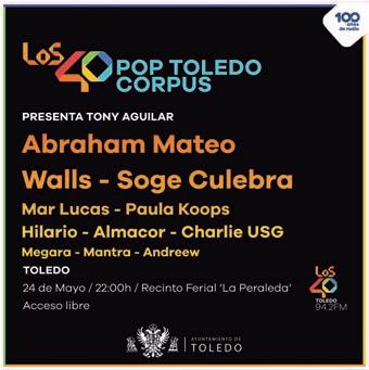Lugar: Recinto Ferial de la Peraleda. Organiza: Cadena 100. Patrocina: Excmo. Ayuntamiento de Toledo.