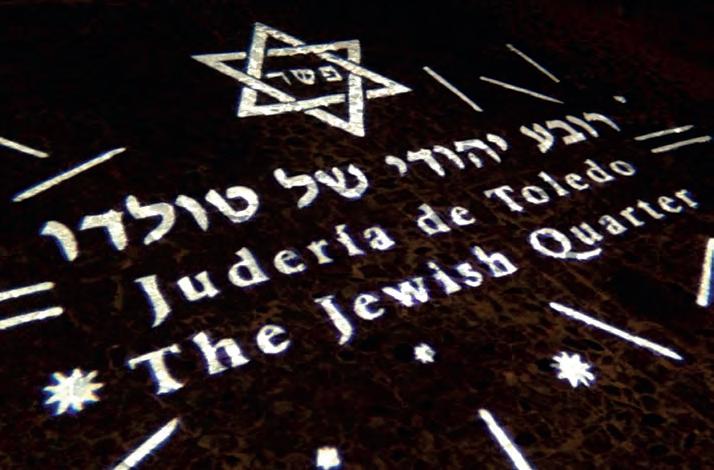 Near the Jewish Quarter: We invite you to discover the medieval feel of the old Toledo Jewish quarter, through projections of light that illuminate their surroundings, remembering through a symbolic form the principle entrances, gates and walls that shape the Jewish Quarter. This illumination is completed with iron plates in these points, indicating to a passing by visitor the outline of the Jewish Quarter.