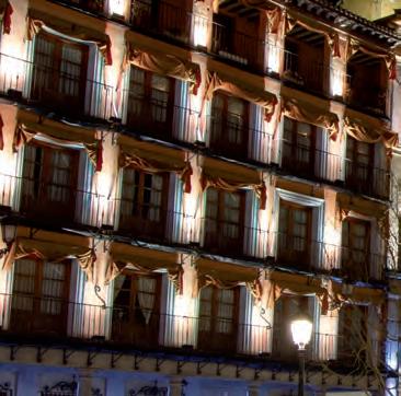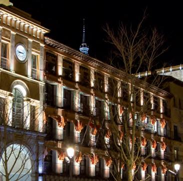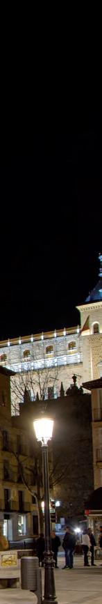 Whennight falls, uncover a new Toledo, rediscover the buildings, thanks to the artistic illumination that has visitors and tourists enjoying the lights and walking the building-lined streets. The illumination highlights artistic elements like sculptures and overhangs, while also displaying the great dimensions of the buildings and other elements of Gothic, Spanish-Muslim, Renaissance and Baroque architec-