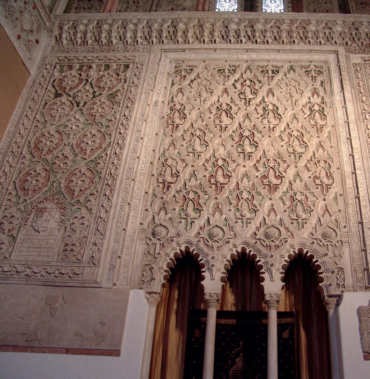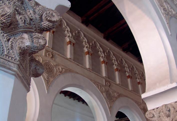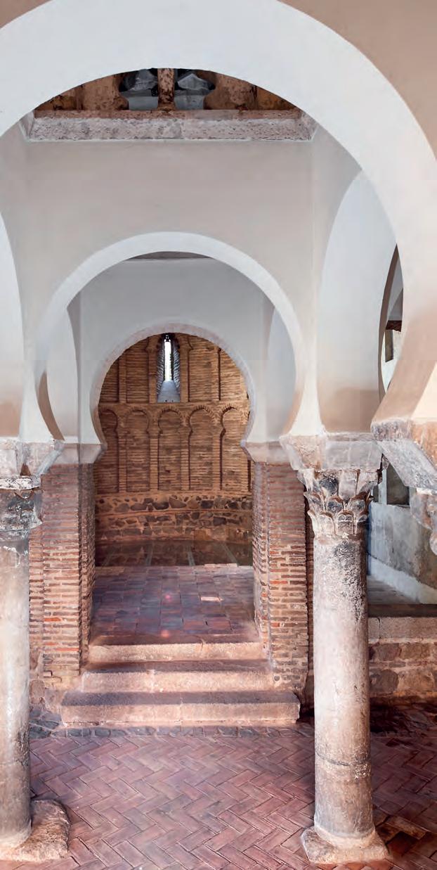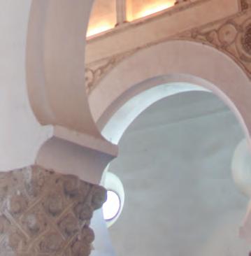 The Jewish Quarter of Toledo has the two most important synagogues from the medieval age in the Iberian Peninsula. The Synagogue of Santa María la Blanca from the beginning of the 13th century, consisting of five naves separated by horseshoe arcs with plasterwork and octagonal pillars. And the Synagogue of Tránsito constructed in 1366, by Samuel Ha-Leví, the big prayer room and the women’s gallery, decorated with plasterwork and paneling. Today it houses the Museum of the Jewish History of Spain, with objects of worship and Sephardic tradition. In the garden of this museum we can enjoy an innovative installation: the gar-