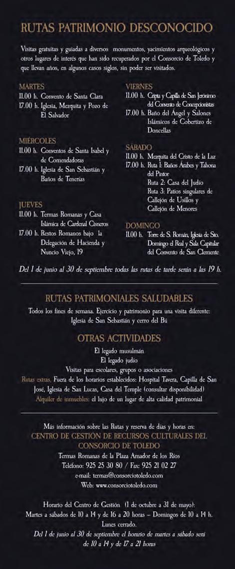 Considerada por muchos como una Segunda Roma, Toledo no deja de ser una ciudad única. Única en sus detalles, su historia, su cultura y su encanto. Las tres culturas de las tres religiones monoteístas -la musulmana, la hebrea y la cristianadejaron su huella en esta peñascosa pesadumbre y cuna de civilizaciones -como decía Cervantes- abrazada por el Tajo, testigo de la impronta de todos los pueblos de la Península Ibérica.