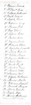 Benita Velasco, Nemesia Rodriguez, Laureana Adalia, Catalina Prieto, Josefa de los Ojos, Dorotea Negro, Estefanía Rebuel, Ramona Fernandez, Mª Francisca García, Eustaquia Santamaria, Benita Tabarés, Agapita Primo, Victoriana Luengo, Macaria Perez, Lucía Tabarés, Saturia García, Paulina García, Eugenia Muelas, D. Vicenta Chaves, Escolástica Fernandez, Maria Gonzalez, Eulalia Magro, Basilisa Santamaria, Aurelia Lopez, Vicenta Puerta, Anastasia Luengo, Macaria Chacón, Asunción Fraile, Fulgencia Santamaria, Atanasia Martin, Victoriana Arevalillo, Bernanrda Almanza, María Valentín, Rogelia Negro, Mercedas Santamaria.