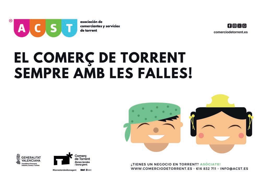 En este 2025, les Falles de Torrent ens conviden com cada any a celebrar la vida, la creativitat i l’essència d’un poble unit. En cada falla plantada, en cada mascletà, en cada moment de l’ofrena, en cada instant de la setmana fallera, és present l’ànima del nostre poble. Un poble que en 2024 ha viscut moments molt amargs però que, gràcies al compromís i solidaritat de cadascun de nosaltres amb la societat, ha sabut sobreposar-se i veure el millor de les persones quan altre l’està passant malament. I el col·lectiu faller va donar en estes circumstàncies un exemple de comportament, prestant la seua ajuda desinteressada després d’aquells tràgics moments.