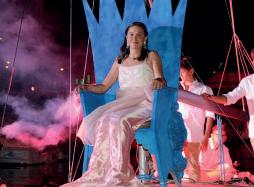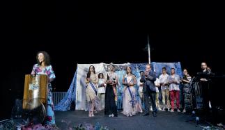 Ambientada en una historia donde una Sirena es rescatada por unos marinos (en este caso compañeros de regatas de la Leonor) el espectáculo brillo con luz propia, y como si surgiera del mar Leonor Romero Carrilero fue coronada Sirena 2022