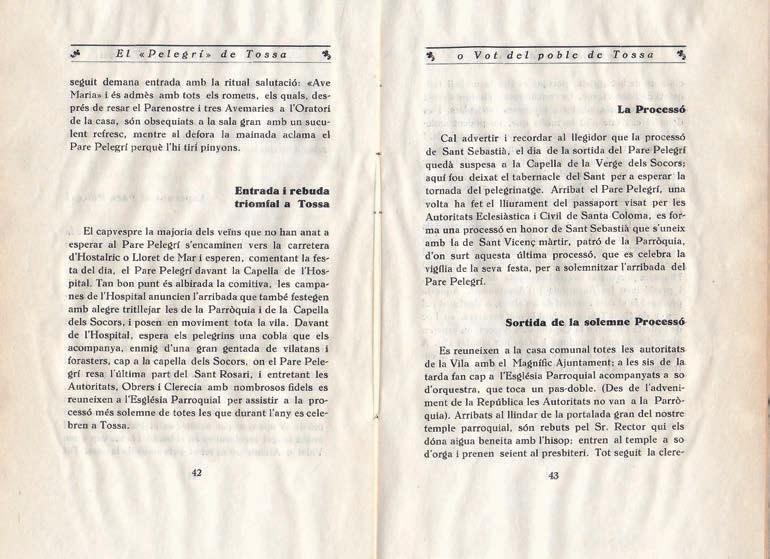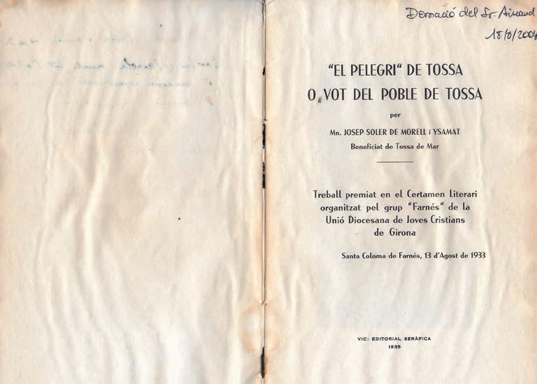 “EL PELEGRÍ” DE TOSSA Noranta anys d’un llibre de referència