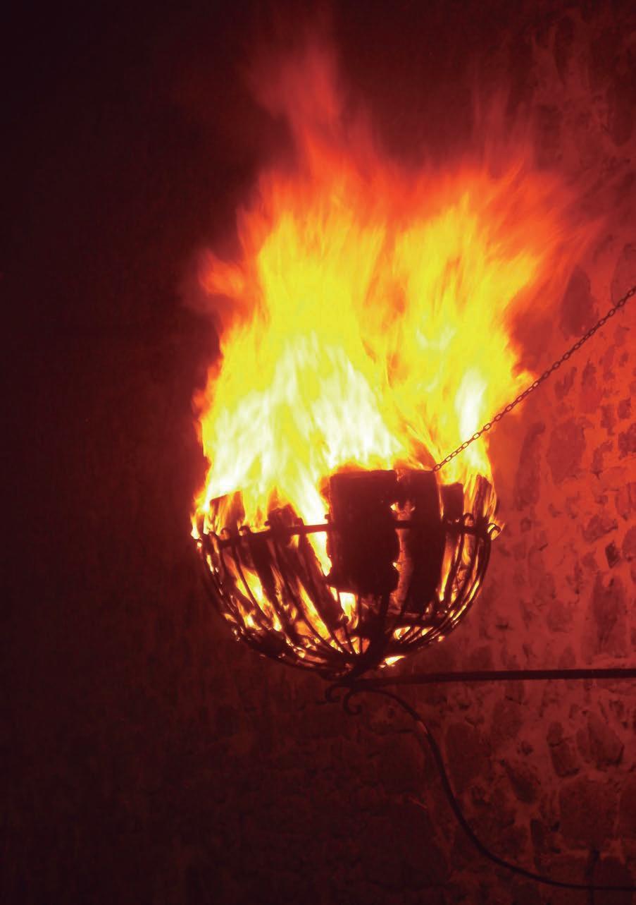 ha semblat oportú d’aprofitar la propera celebració del norantè aniversari de la seva publicació, per reproduirla a manera de reedició, inserida en aquest Programa de Festa Major de Sant Vicenç 2024. Si en aquella edició a la portada hi apareixia el retrat de Baltasar Blanquet Fonalledas que fou Pelegrí el 1925, aquí us oferim una imatge sublim del fotògraf colomenc David Rueda, presa en el transcurs d’un dels pelegrinatges més singulars i complicats, el del gener de 2021, en plena onada pandèmica de la Covid-19. El Pare Pelegrí d’aquell any, Jaume Gotarra Baltrons, va donar fidel compliment del Vot assistit en la distància per tan sols sis acompanyants, superant tota mena d’entrebancs sanitaris i administratius interposats per buròcrates sapastres d’instàncies superiors que ignoraven la realitat. I per acabar, a l’interior de la contraportada, hem inclòs una fotografia de la teiera encesa a la muralla del carrer des Portal. Amb el foc com a símbol de la llum i la purificació cloem aquest Programa, enguany dedicat a la nostra tradició més afermada.