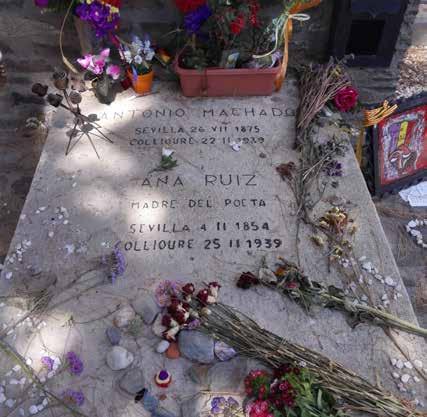 Tumba en la ciudad francesa de Colliure donde reposan los restos de Antonio Machado (1875-1939) y de su madre Ana Ruiz (1854-1939). Ana profesó un intenso fervor por Antonio Machado, acompañándolo al exilio en Francia y asistiéndolo en el lecho de muerte, en la ciudad de Colliure, hecho que ocurrió el 22 de febrero de 1939. Unos días después, el 25 de ese mismo mes, moría, la anciana madre, en la población francesa. Imagen: Pedro Solano Garre.