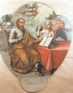 Pinturas de los cuatro evangelistas realizadas en el siglo XVIII por la totanera Josefa Martínez Aledo para las pechinas de la cúpula de la parroquia de Nuestra Señora del Rosario de Bullas. Lo decorativo envuelve la tarea de los evangelistas que, ensimismados en su quehacer, reciben la inspiración divina. Un cierto artificio arquitectónico y paisajístico preside cada una de las escenas, en las que los evangelistas se acompañan con el símbolo que la tradición les asigna (san Mateo, el ángel; san Marcos, el león; san Lucas, el toro y san Juan el águila). Volúmenes escasamente conseguidos, posturas forzadas, con errores de perspectiva, con gestos y expresiones muy diluidos, definen la configuración de estas representaciones que fueron ejecutadas para ser colocadas en un espacio elevado y, por tanto, carentes de detalles y rasgos de precisión. Estas piezas fueron restauradas en 2001 en el Centro de Conservación y Restauración de la Comunidad Autónoma. Imágenes gentileza del indicado Centro.