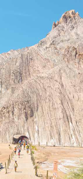 El Parque brinda una experiencia singular para disfrutar en familia desde el momento en el que uno se coloca el casco de minero. Un recorrido guiado discurre a 86 metros de profundidad por el interior de las galerías, lo que desvela espectaculares pliegues y vetas de fascinantes colores y formas, así como oquedades de gran belleza como la sala Coral –plagada de estalactitas y estalagmitas de sal- o la Capilla Sixtina, una deslumbrante bóveda de tonalidades ocres y rojizas.