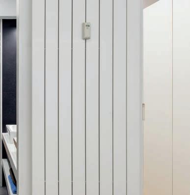 un espacio previo al dormitorio y al baño y tiene su reflejo en las puertas del armario que, literalmente, ocupa el lugar del pasillo, empleando esa misma celosía de roble y esbozando virtualmente el espacio por el que discurría el largo corredor. Una de las ideas fundamentales era que estuviese nítidamente presente ese pasillo en una vivienda que no tiene pasillo.