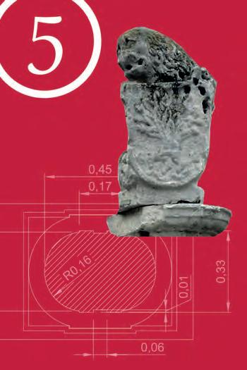 06 Pruebas de microproyección de áridos para limpieza de la costra negra. 07 Restos de pátinas históricas rojizas en L06. 08 Reconstrucción de capitel L05 con mortero de cal. 09 Ejecución de zapata de cimentación en el L16. 10 Extracción de réplica de garantía con molde de silicona.