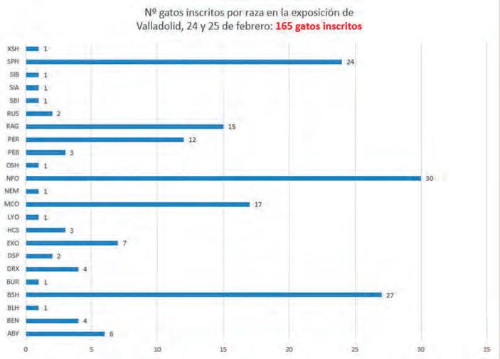Siendo las razas con mayor número de ejemplares presentes el Bosque de Noruega, el British, el Sphynx y el Main Coon