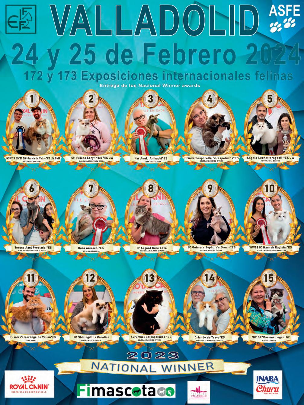 Entrega de los premios del Ranking de ASFE de 2023 a los 10 mejores gatos en España en 2023 de cada una de las 4 categorías por sus resultados en las exposiciones felinas a lo largo del año