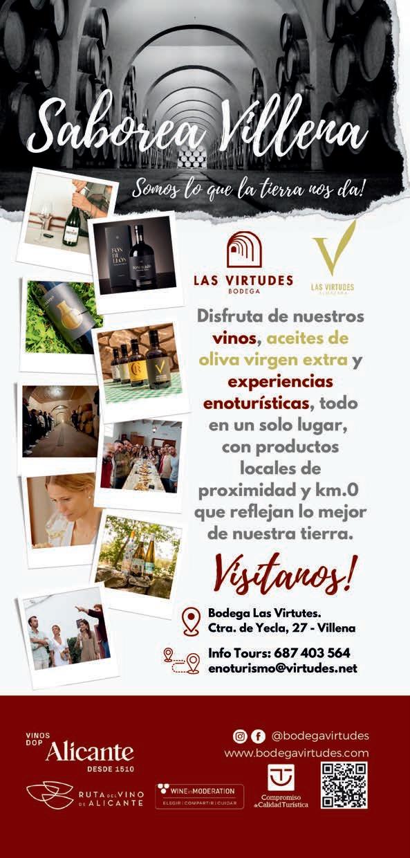 El clima de Villena ofrece unas condiciones perfectas para el cultivo de la vid y la elaboración de vinos Los blancos y rosados son frescos y afrutados, los tintos son cálidos, carnosos, con buena textura y acompañados de ricos aromas balsámicos . En Villena también se produce el Fondillón, el vino alicantino más famoso de la historia Es un vino espeso y dulce, se realiza con la variedad Monastrell que alcanza unos 18º, muy adecuado para acompañar los postres .
