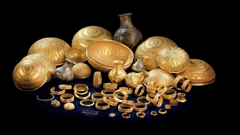 El Tesoro está compuesto por 66 piezas de oro, plata, hierro y ámbar. Es un conjunto formado por cuencos, brazaletes, botellas y diversas piezas de adorno entre las que destaca un remate de hierro meteorítico y un botón de ámbar y oro. Se considera el tesoro prehistórico más importante de Europa, junto al de Micenas.
