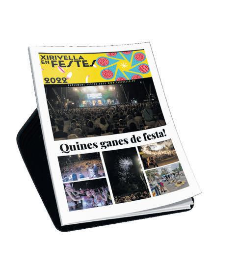 BUTLLETÍ INFORMATIU MUNICIPAL Periòdic gratuït NÚMERO 91 (segona època) SETEMBRE 2022 www.xirivella.es premsa@xirivella.es Edita: Direcció i redacció: Juan Cristóbal García Aranda CONSELL RECTOR President Roberto Romero Montañés Vocals Águeda Ferrandis, Encarna Martí, Paco Partida, Emiliano Gómez, Álex Pozuelo, Ricard Montilla, Alba Berga, Begoña Cortijo, Marta Moreno, Pablo Muñoz, Rosana Andrés, Pilar Carrascosa Secretaria Marisa Martínez Impressió Editorial MIC Tiratge 13.000 exemplars Cost 3.459,7 euros (IVA inclòs) Cost per exemplar 0,266 euros (IVA inclòs) 4 25 3 13 7 26 8 28 9 29 10 30 PÀG PÀG PÀG PÀG PÀG PÀG PÀG PÀG PÀG PÀG PÀG PÀG Renovados diecisiete parques infantiles Xirivella arrasa en els Miracles de Sant Vicent 2021 se cierra con un remanente de más de siete millones de euros Quines ganes de festa!