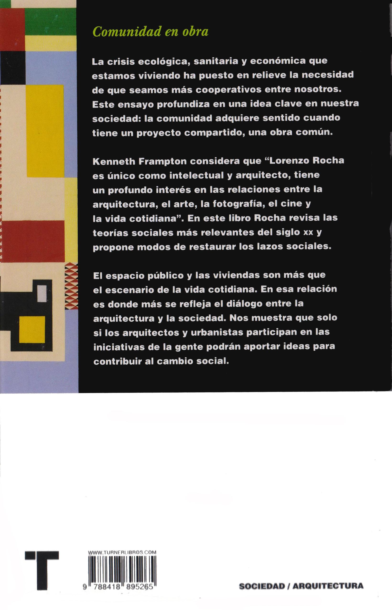 Las comunidades requieren la restauración de sus obras para la recuperación de su sentido, y los diseñadores de espacios (ar quitectos y urbanistas) pueden contribuir a dicha recuperación, como agentes capaces de anticipar las situaciones espaciales que la comunidad requerirá para dotarse de sentido e ir realizándolas. De ahí la convicción de que los diseñadores dependen direc tamente de las necesidades comunitarias y que la participación de las personas en la definición de sus espacios no es superflua, sino fundamental en todo proceso de diseño. De hecho, no son las personas quienes participan en los proyectos de los diseñadores, sino todo lo contrario, la arquitectura y el urbanismo son disciplinas contingentes, los arquitectos y urbanistas son quienes deben participar en las iniciativas de la gente.