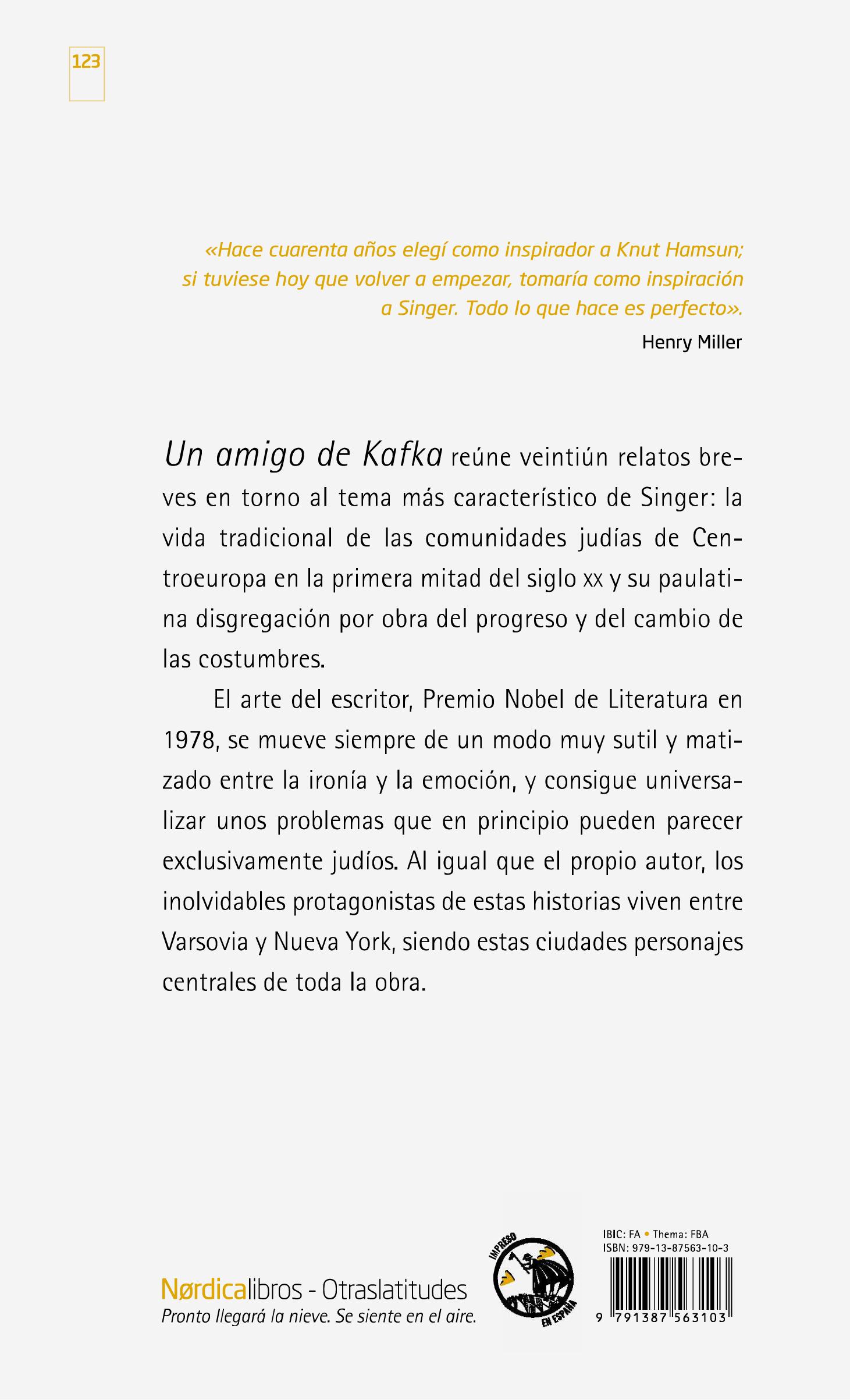 Años antes de que leyera ninguno de sus libros supe de Franz Kafka gracias a su amigo Jacques Kohn, un antiguo actor del teatro yidis.1 Digo «antiguo» porque cuando lo conocí llevaba años sin pisar un escenario. Fue a principios de los años treinta, y el teatro yidis de Varsovia había empezado ya a perder espectadores. El mismo Jacques Kohn era un hombre enfermo y derrotado. Aunque seguía vistiendo como un dandi, la ropa que tenía estaba raída. Llevaba un monóculo en el ojo izquierdo, usaba un cuello alto pasado de moda (conocido como «matapadres»),2 zapatos de charol y un bombín. Los cínicos del club de escritores yidis de Varsovia que ambos frecuentábamos lo apodaban «su Ilustrísima». Aunque cada vez iba más encorvado, se esforzaba tozudamente en mantener los hombros rectos. Lo poco que le quedaba de un pelo que había sido rubio se lo peinaba en forma de puente sobre el cráneo pelado. Siguiendo la tradición del teatro de otros tiempos, de vez en cuando se ponía a hablar en yidis germanizado: especialmente si hablaba de sus relaciones con Kafka. Últimamente le había dado por escribir artículos de prensa, pero los editores