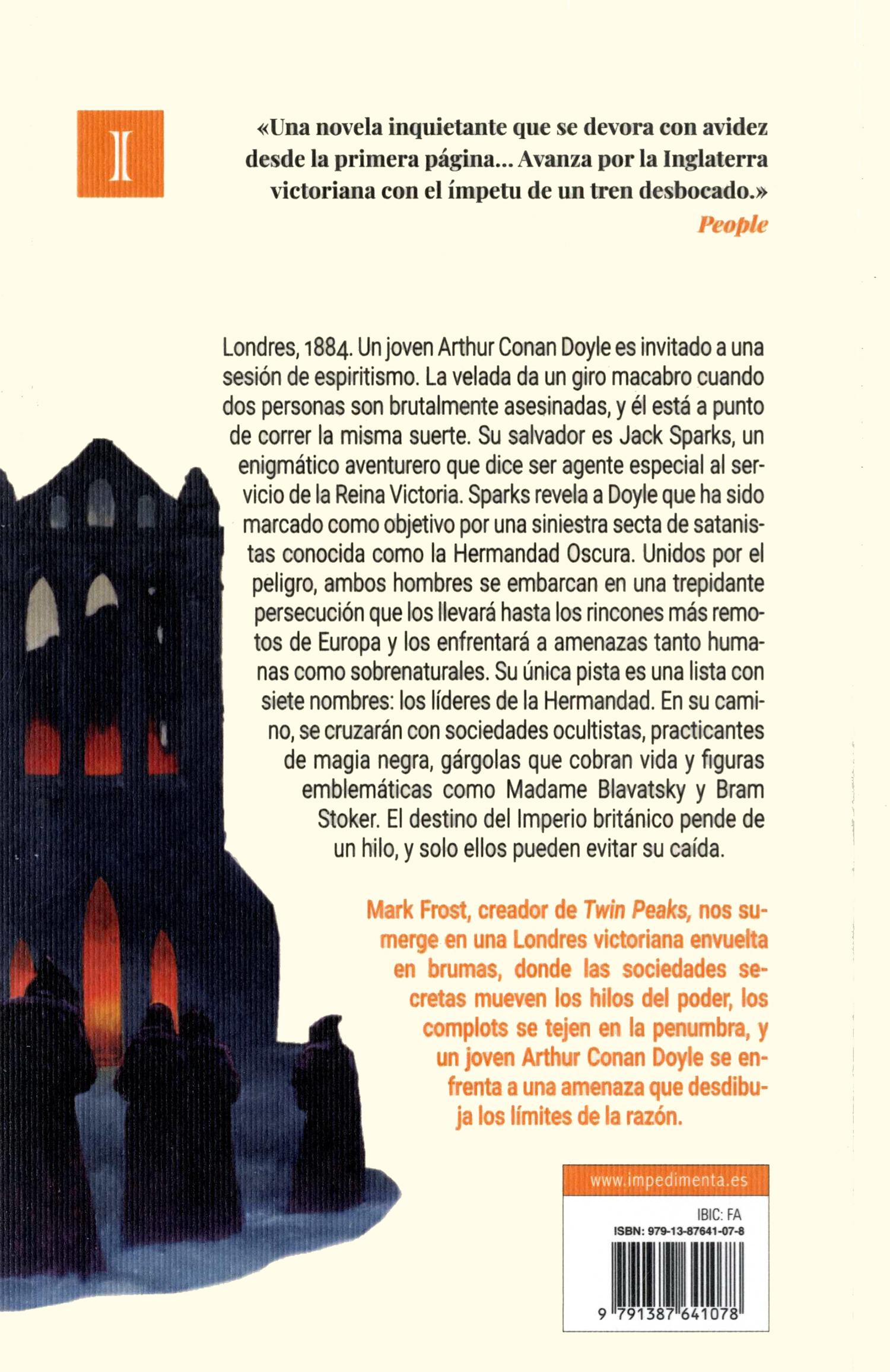 Al servicio de esta visión, Doyle había escrito cuatro libros durante los últimos años. Los tres primeros habían sido debidamente remitidos a unos cuantos editores, que los habían rechazado y devuelto, y ahora descansaban en el fondo de un baúl de mimbre que se había traído de los mares del sur. Todavía aguardaba respuestas a su más reciente composición —un trepidante relato de aventuras titulado La Hermandad Oscura—, que consideraba la mejor de sus obras por diversas razones, en especial por el ferviente deseo que tenía de verse rescatado de la pobreza.