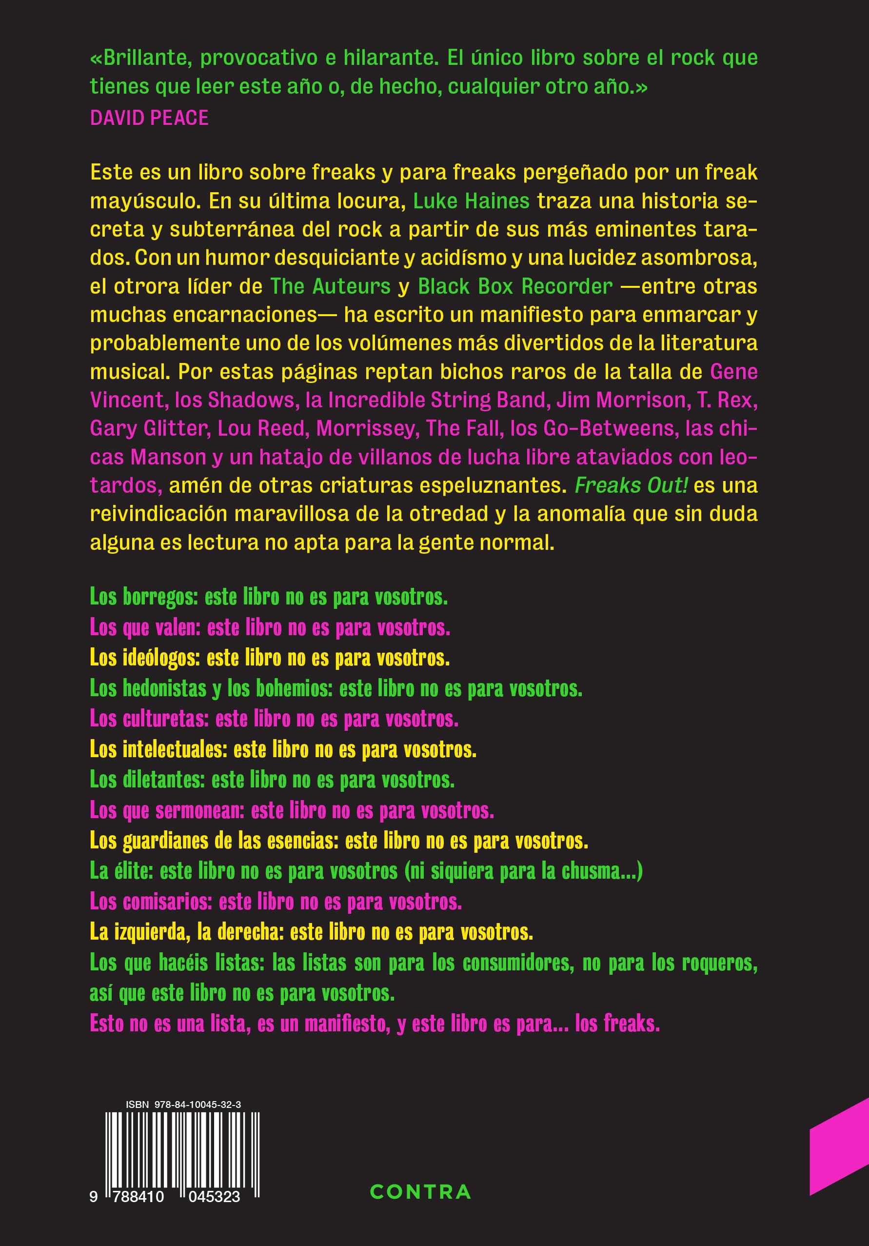 Freaks Out! Weirdos, Misfits and Deviants – The Rise and Fall of Righteous Rock ’n’ Roll © 2004, Luke Haines Publicado originalmente en inglés en el Reino Unido por Nine Eight Books, un sello de Bonnier Books UK Limited, Londres.