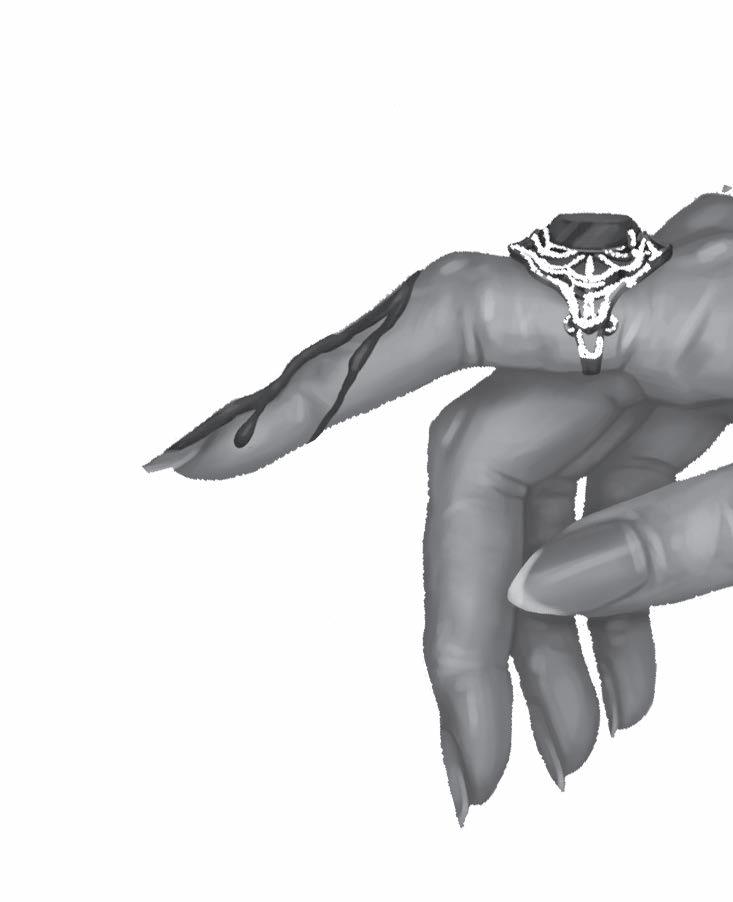 por su propia mano, entrasen en el palacio. Para confirmar estas palabras tomó la mano de la baronesa, pero la respiración y el habla se le cortaron, al tiempo que un frío enorme le recorría el cuerpo. Sintió que su mano era apresada por unos dedos rígidos, helados como la muerte, y le pareció como si la enorme y huesuda figura de la baronesa –que le contemplaba con ojos sin mirada– estuviese envuelta en la espantosa vestimenta de un cadáver.
