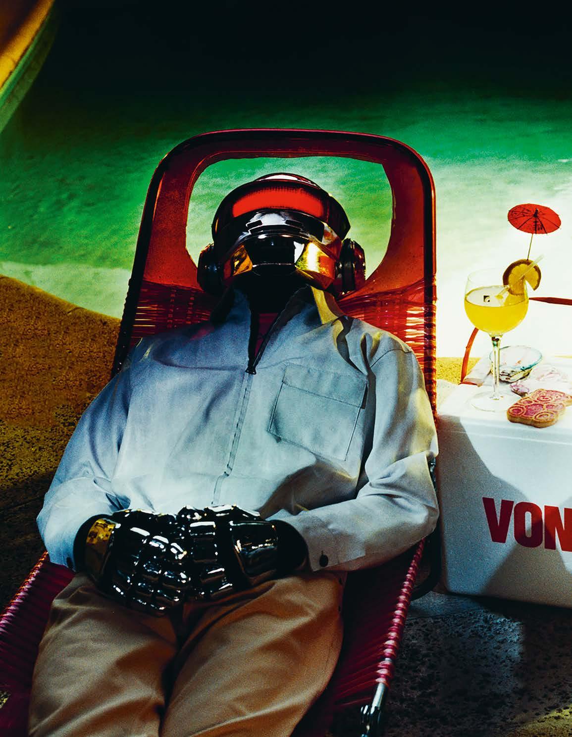 El domingo alquilamos una de las habitaciones del hotel Embassy de Londres para nuestra sesión de fotos (hay testimonio de ello en YouTube, en el punto 0:25 del tráiler del documental Daft Punk Unchained). Thomas se lanzó a posar alegremente ante la cámara de RIP, el fotógrafo, pero Guy-Man, quizá todavía traumatizado por el viaje en bus del viernes, apenas cooperó. Cuando revisamos las imágenes reveladas, la elección para la portada fue sencilla: solo había una foto en la que Guy-Man no estuviera con el ceño fruncido, así que esa fue la que utilizamos. Daft Punk parecían estar tan desencantados con la experiencia que optaron por ponerse máscaras en todas las sesiones de fotos que siguieron.