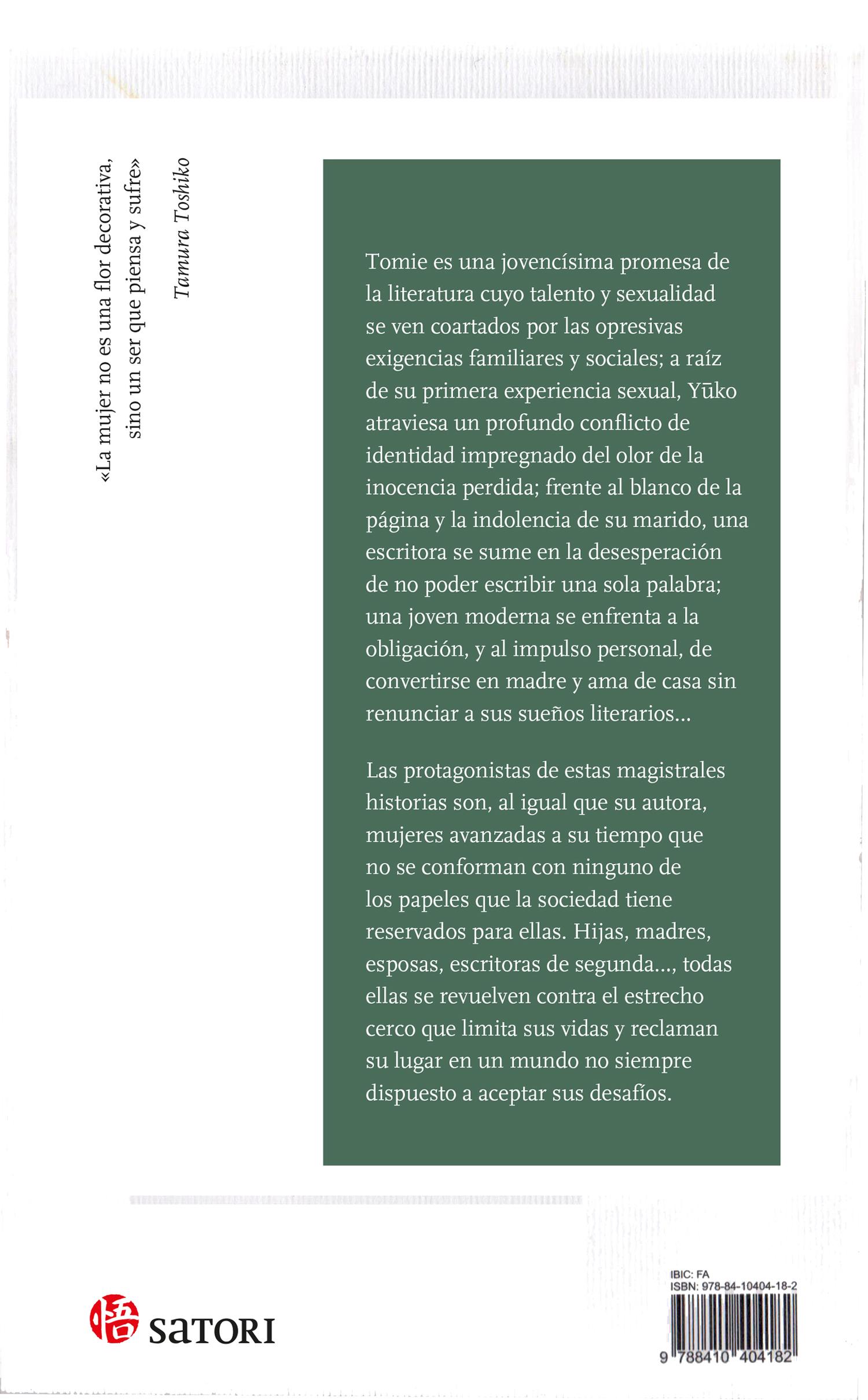 Tomie salió de la universidad por la puerta de atrás. La mayoría de las alumnas ya se habían ido y el rumor del agua llegaba a la residencia de estudiantes desde la distancia. En ese momento vio a su compañera Furui, que era aficionada a la jardinería, bajando la colina con unas tijeras de podar en la mano. Cuando Tomie la saludó, esta se giró y le sonrió sin dejar de caminar. Las amplias perneras de su hakama 1 verde oliva ondeaban al viento. La piel pálida de sus piernas asomaba en la parte superior de los calcetines blancos. Furui solía ir por la residencia de estudiantes de habitación en habitación para mostrar con orgullo las flores que ella misma había plantado y disfrutar de los elogios. Le encantaba decir que pronto crearía un jardín ideal en el que pasaría el resto de su vida rodeada de flores. «¿Sigue Furui a pies juntillas los principios del director? ¿Vive abnegadamente y lucha desde las sombras?», se preguntó Tomie.