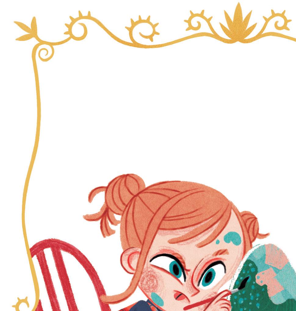 Marina estaba empezando a pintar cuando una música muy alta hizo que diera un respingo. ¡La pintura acabó en su frente!