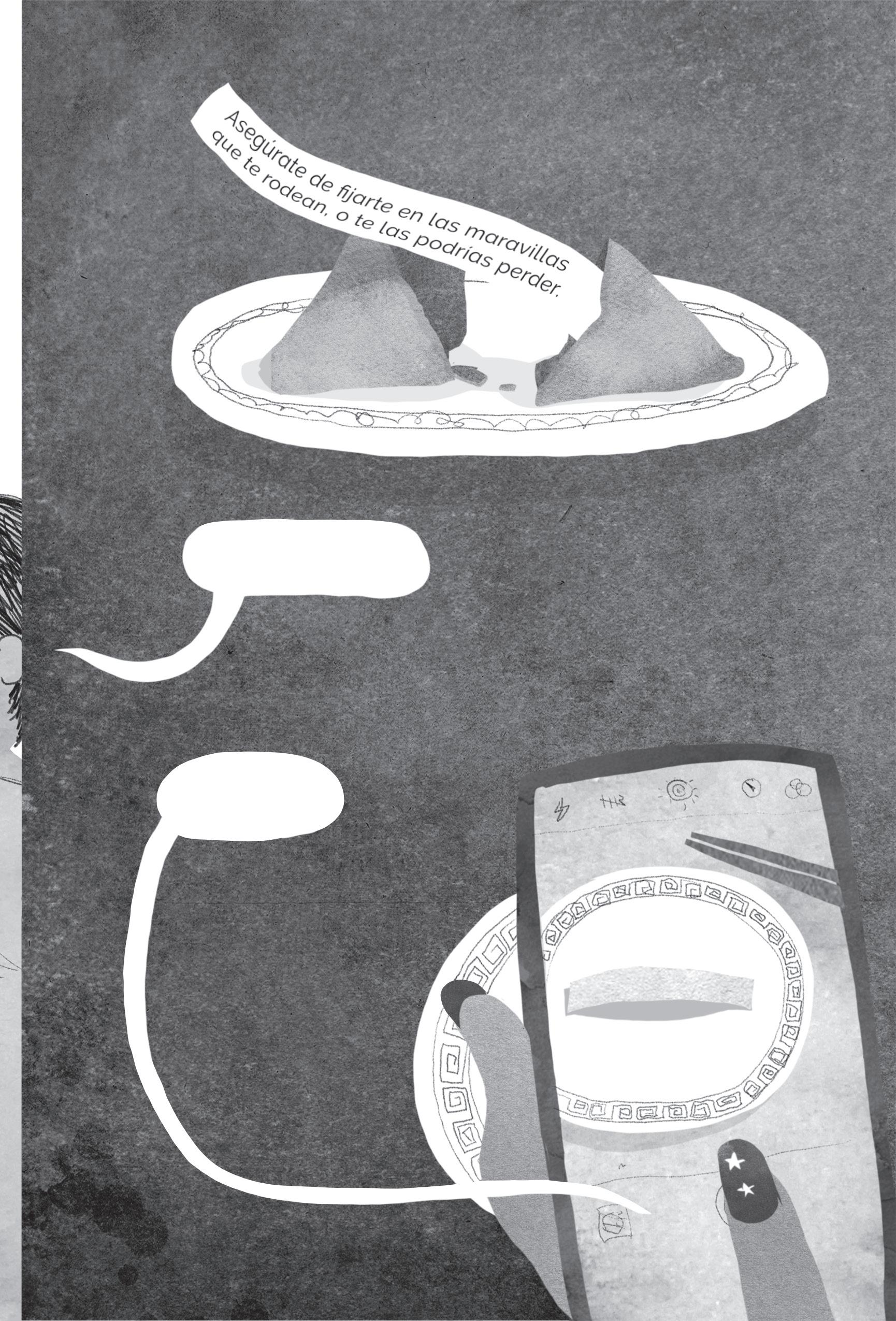 —¿Te vas a comer el resto de los fideos? —le preguntó cuando se terminó los suyos. Pero la tía Nora no lo escuchó. Estaba ocupada sacándole una foto a sus uñas.