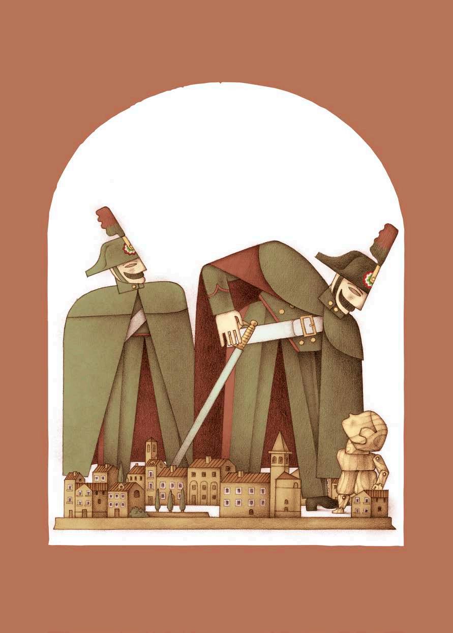 El carabiniere, sin moverse lo más mínimo, lo agarró limpiamente por la nariz (se trataba de una narizota desproporcionada que parecía hecha aposta para ser atrapada por los carabinieri) y se
